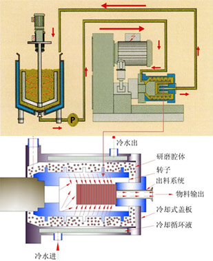 縮短漿料在磨腔內(nèi)的滯留時間,有效抑制溫度上升。通過循環(huán)冷卻水的冷卻,可實現(xiàn)低溫研磨。